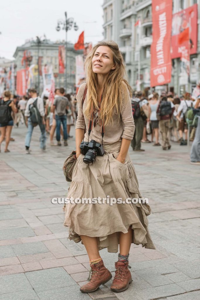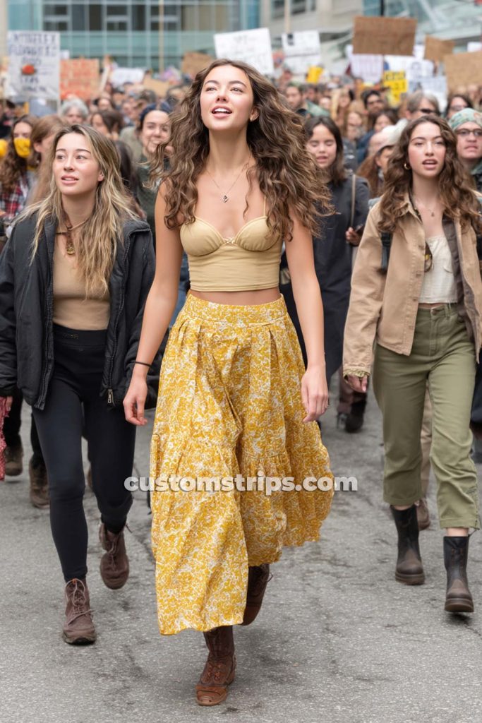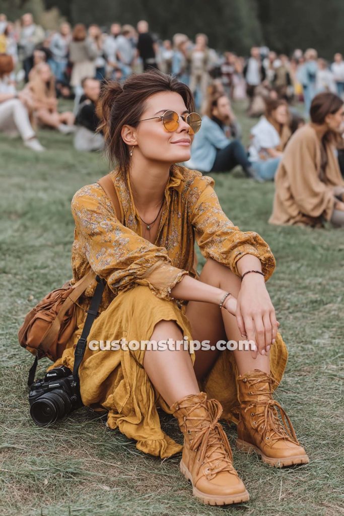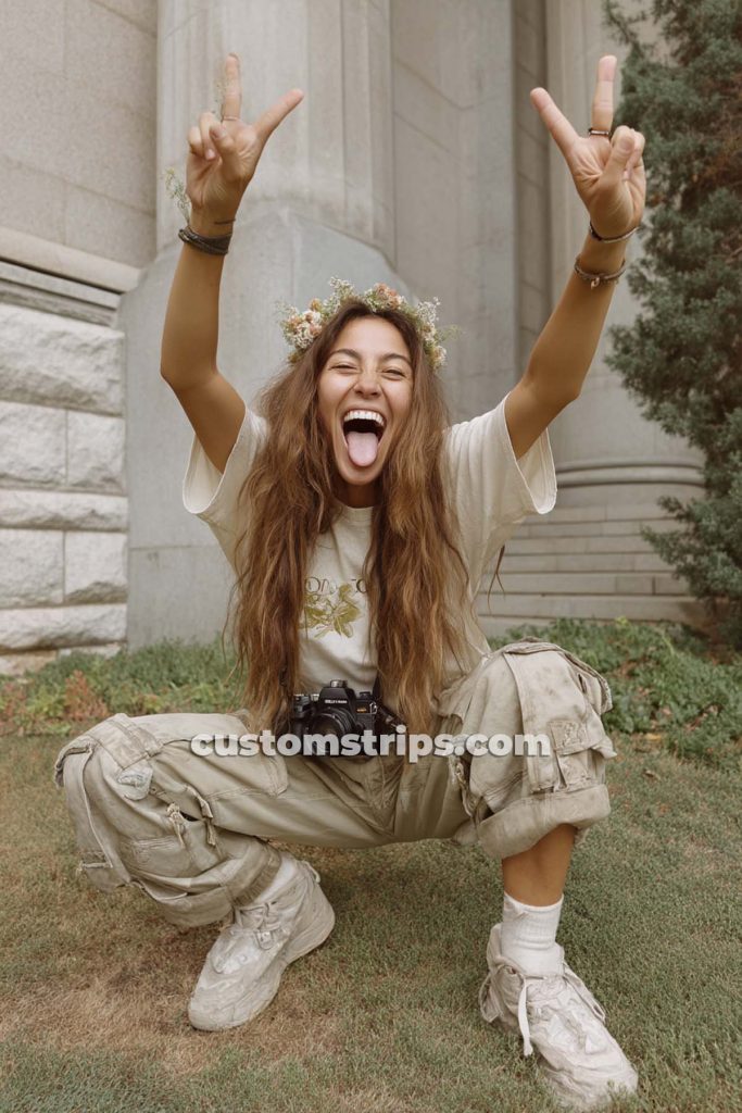 Accessories bloom too: flower crowns, peace sign necklaces, round-tinted sunglasses, and stacks of beaded bracelets. Hair flows free or gets braided with tiny blossoms tucked in. Whether you’re headed to a modern music fest or just vibing in your garden, Flower Power is your go-to for soft rebellion and radiant energy.