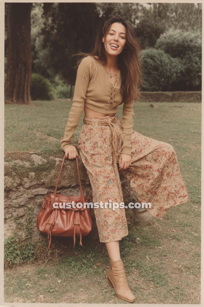 The silhouettes are fluid, the prints are loud (in the best way), and everything feels handmade or heartfelt. You’ll see flared pants, fringe vests, halter tops, and oversized sunglasses—all dancing in floral patterns. Flower Power Fashion doesn’t whisper—it sings, reminding us of a time when beauty and protest walked hand in hand, barefoot.